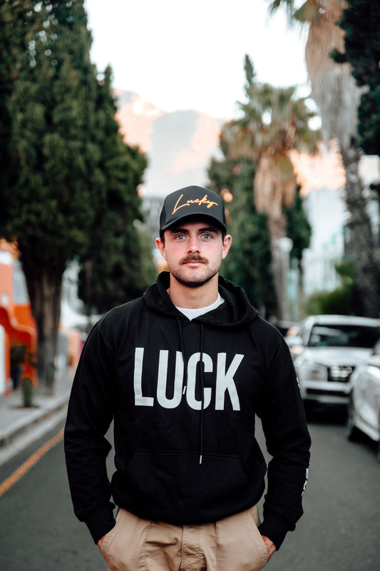 Black Unisex Hoodie - Rose Gold "LUCK"