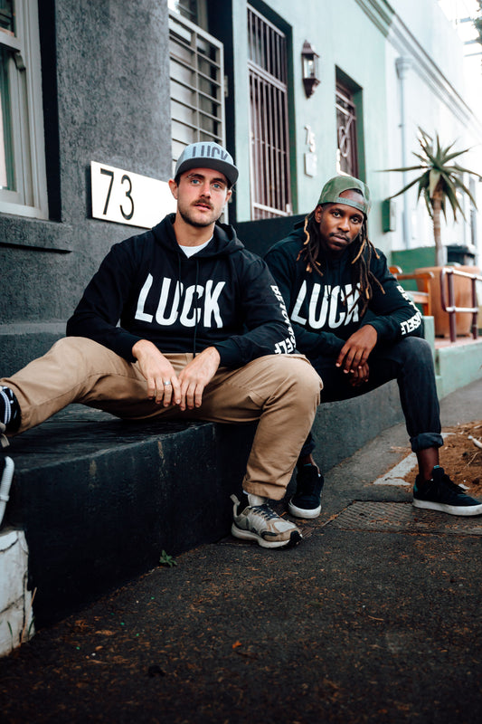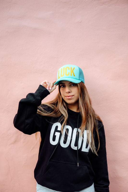 Black Unisex Hoodie - White "GOOD" or "LUCK"